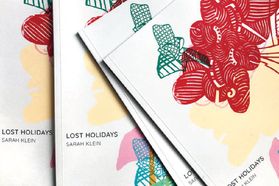 Lost Holidays, Sarah Klein. 2019. Paperback. 8.5 x 11. 22 pages. Full color. Perfect bound. With an introduction by Clark Buckner. Telematic Media Arts. $20